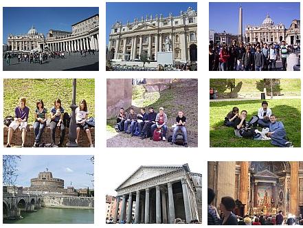 Nous délaissons la période antique pour visiter cette fois la Rome « baroque ». Au programme : la place et la basilique Saint-Pierre, puis remontant le Tibre nous passons devant le château Saint-Ange, au pied duquel nous prenons notre pique-nique. Nous avons encore cinq bonnes heures devant nous, puisque pour cause de repos réglementaire avant un trajet de nuit, le chauffeur ne peut pas venir nous chercher avant 20H15. Nous visitons donc le Panthéon, puis nous arrivons devant l’incontournable Fontaine de Trevi, autour de laquelle nous avons droit à une heure de shopping. Nous continuons encore à nous promener jusqu’à la Piazza Navona, et c’est l’heure du dîner, libre lui aussi : la plupart d’entre nous sont très fiers d’être servis « comme des grands » aux terrasses des différentes pizzerias qui bordent la place !