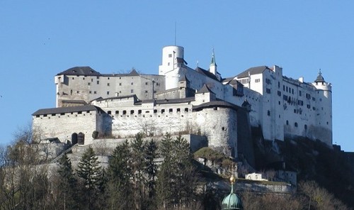 La forteresse de Hohensalzburg a été construite par le prince-archevêque Gebhard en 1077. Située sur le Mönsberg, qui culmine à 120m de haut, elle surplombe l'ancienne ville de Salzburg. C'est le plus grand château fort d'Europe centrale qui soit resté dans son état initial avec une largeur de 150m et une longueur de 250m. Elle domine la ville natale de Wolfgang Amadeus Mozart.