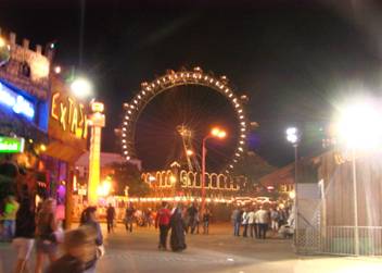 Le Prater est un magnifique parc situé dans le coeur de la ville de Vienne. Cet endroit est une fête foraine ouverte toute l'année. Vieux de plus de 600 ans, il servait à l'origine à l'élevage du gibier et à la chasse. On y trouve aujourd'hui de nombreuses attractions dont la plus connue est la Grande Roue qui culmine à 65 m de hauteur. Détruite pendant la guerre, la première roue achevée en 1897 fut reconstruite avec un nombre différent de cabines. C'est à ce jour un parc où l'on peut profiter d'attractions à sensations, mais aussi se détendre, ou pratiquer du sport. Le parc est entouré de grands espaces verts. Après nous être dispersés dans le Prater par petits groupes, nous avons pu nous essayer aux manèges. Certains se sont promenés, d'autres ont préféré une montée d'adrénaline sur les montagnes russes. Il subsiste encore dans le parc des attractions anciennes fabriquées en bois. En revanche, de nouveaux manèges, plus récents, effectuent des inversions et présentent des positions insolites. En visitant ce parc de nuit, nous avons pu observer la luminosité et la bonne ambiance que dégage cet endroit. Chaque recoin scintillait de couleurs, chaque attraction brillait de mille éclats. La musique de fond et cette forte lumière rendaient cet endroit très chaleureux et agréable. La bonne humeur et la joie étaient toutes deux de la partie ce soir-là ...