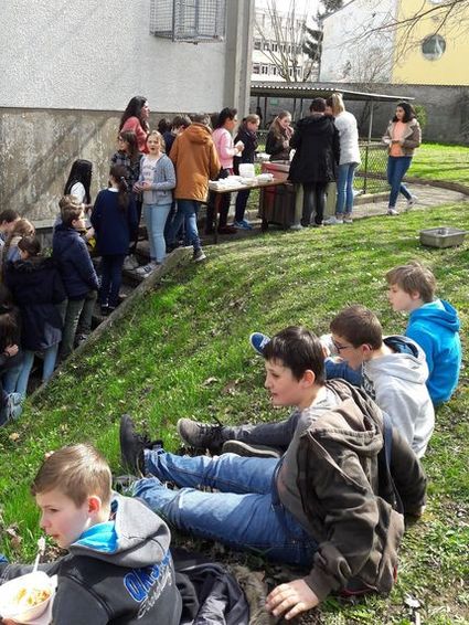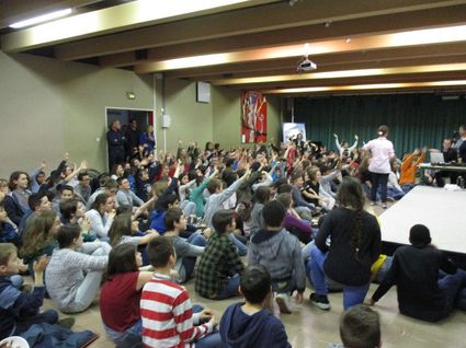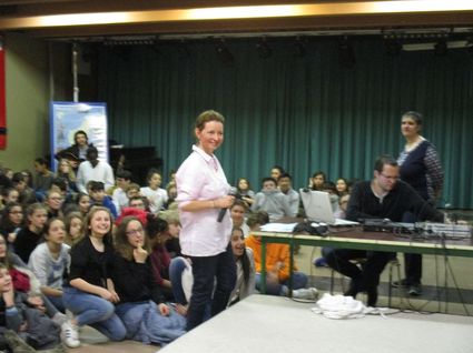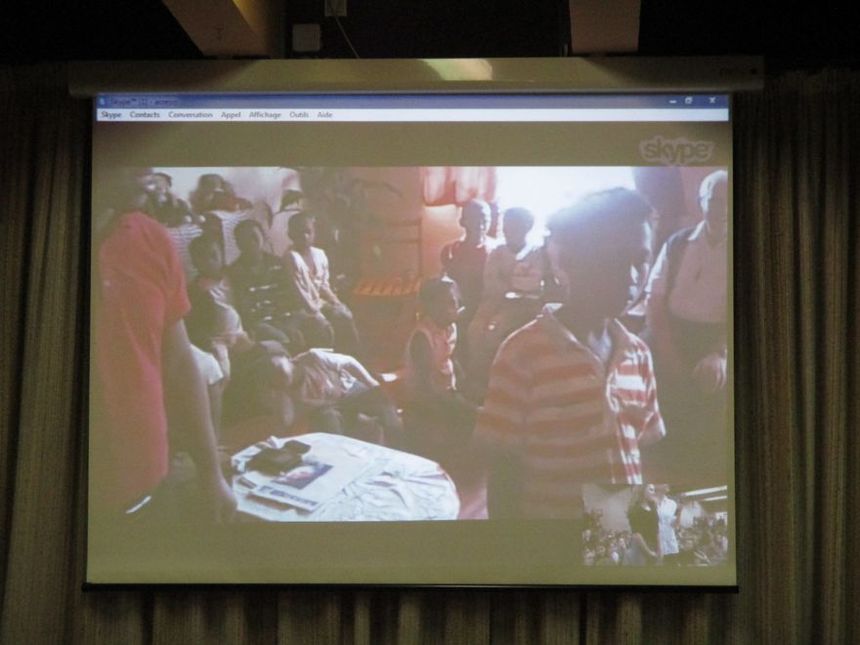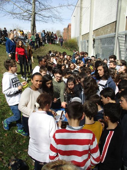 Après ce partage, tous les participants ont salué en direct, via Skype, un petit groupe d’élèves de Madagascar qui ont chanté une belle chanson. Le bénéfice du Bol de Riz (1 641 €) en effet est destiné à l’association Vozama, qui favorise l’accès à la scolarité des enfants malgaches. Plus précisément, la somme récoltée sert à financer les 4 postes parrainés par le collège (300 euros chaque poste) ; nous sommes le seul établissement, avec le lycée Lavoisier de Mulhouse, à avoir pu pérenniser ces parrainages indispensables. Le montant restant pourra être affecté à un autre poste "Kinasa Sud" financé précédemment par un autre organisme.