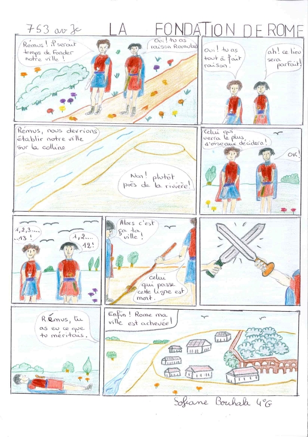 Chaque planche de BD résume un épisode de la fondation et des premiers temps légendaires de Rome - et pour les élèves, beaucoup d'heures de travail !