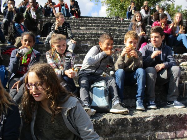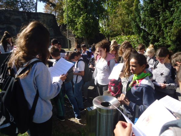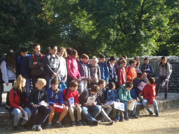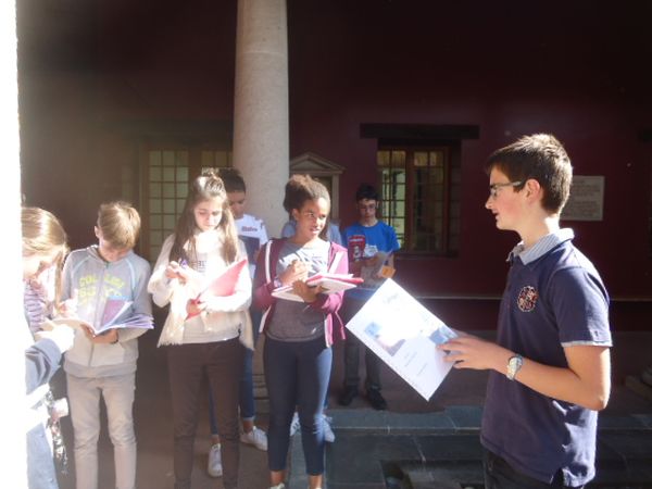Les latinistes de Troisième avaient préparé cette visite sous la forme d’un livret de découverte à compléter, qu’ils ont distribué aux plus jeunes, et ce sont également eux qui, supervisés par leurs professeurs, ont assuré la fonction de « guides touristiques », donnant de vive voix les explications nécessaires devant chaque vestige de bâtiment remarquable.