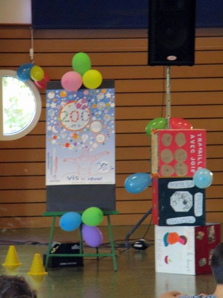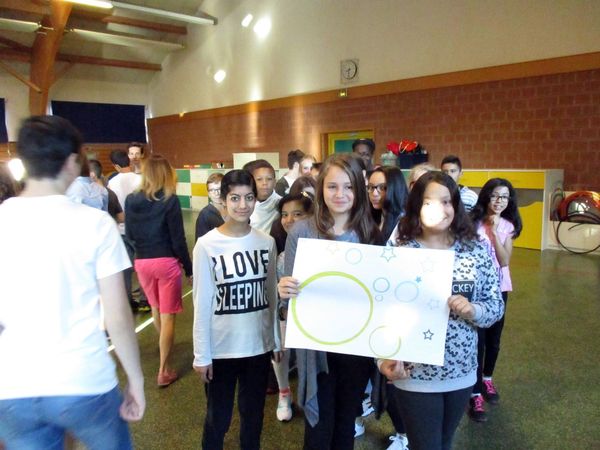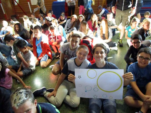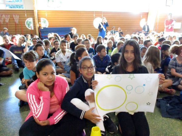 Un élève par classe de l’école primaire a été appelé pour recevoir une affiche et une grande bulle en papier. Les classes du collège ont reçu des bulles et des étoiles pour y inscrire leurs réflexions tout au long de l’année.