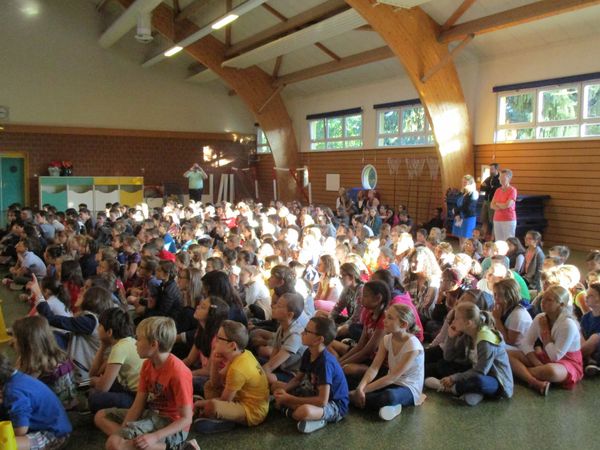 Grande première cette année à Jean XXIII ! Quelques jours après la rentrée scolaire, nous nous sommes tous retrouvés dans le gymnase du primaire pour le lancement de l’année pastorale. Six « réunions solennelles » se sont succédé pendant toute la matinée, mélangeant tous les niveaux, de la maternelle à la 3e.