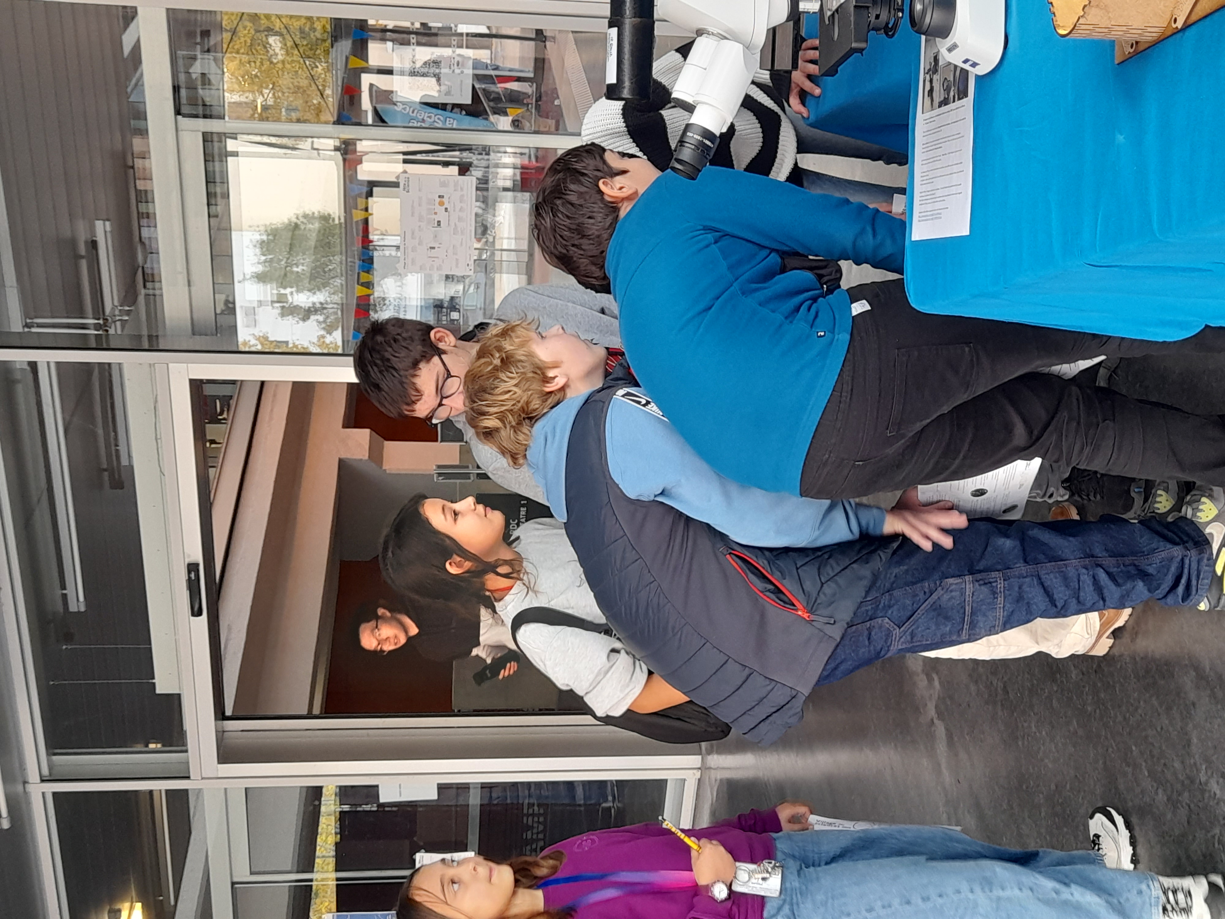 Une quinzaine d’élèves de différentes classes, accompagnés par M. Huntzinger, Mme Simonin et Mme Latscha, sont allés explorer quelques-uns des nombreux ateliers de la Fête de la Science, dans le bâtiment « cathédrale » de l’Université de la Fonderie. Pendant toute une après-midi, ce fut l’occasion pour eux d’expérimenter, de questionner et de se passionner pour les différents thèmes proposés : observations au microscope, astronomie, fabrication et utilisation de la fibre de carbone... mais aussi programmation et mondes virtuels.