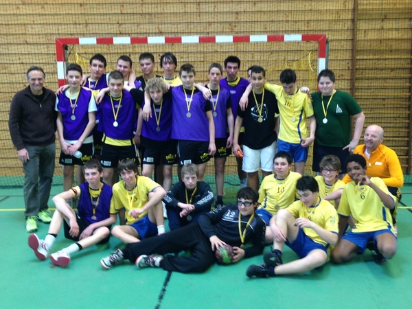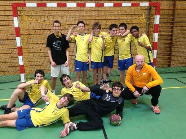 Composition de l'équipe : WALTI Lucas 6E, BERTRAND Matthieu 5D, BERTRAND Nicolas 6D, SULEJMANI Eldian 5D, STACH Benjamin 5C, THEPAUT-WIMMER Augustin 6D, AMBIEHL Brice 5E.