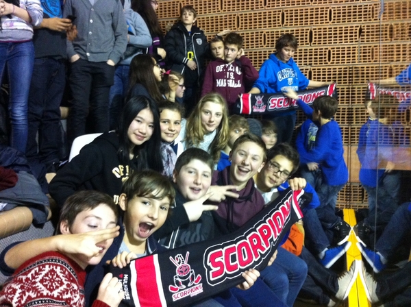En février, tout un groupe d'élèves, tirés au sort parmi les nombreux candidats, a pu passer un après-midi à la patinoire pour assister au match MULHOUSE-BORDEAUX.