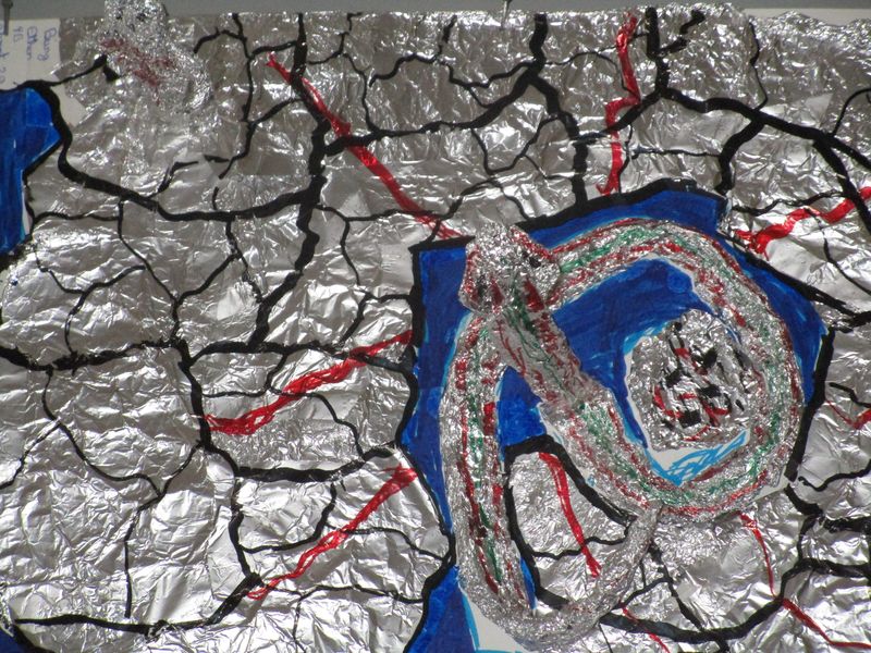 A partir d’un matériau, l’aluminium, les classes de 4B, 4C et 4G se sont interrogées sur les caractéristiques de ce matériau et comment les exploiter pour réaliser une production oscillant entre la réalité et le rêve, l’hallucination. Voici quelques-uns de ces travaux questionnant la notion de matérialité :
