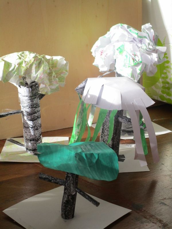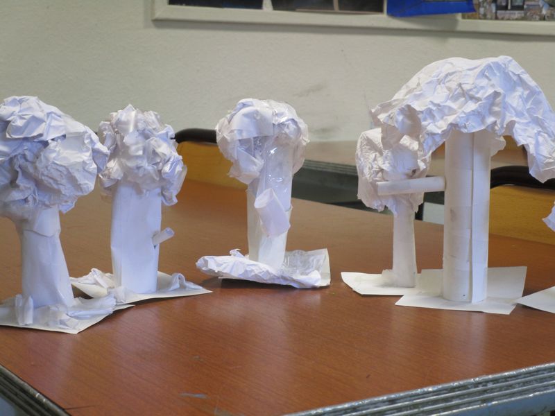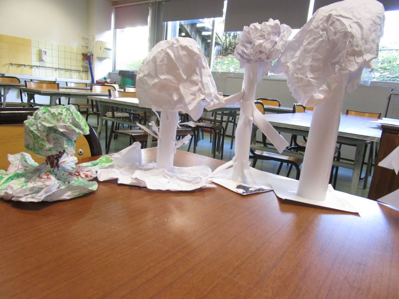 A partir d’une image A4 d’une écorce d’arbre, les classes de 6A, E, F et G ont cherché comment passer du plan au volume en réalisant les petites sculptures que voici :