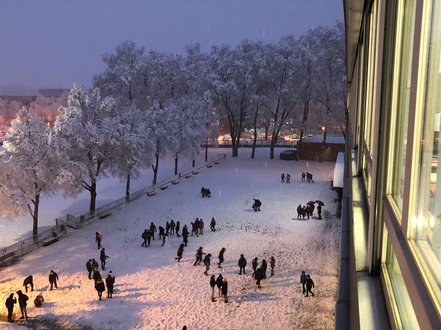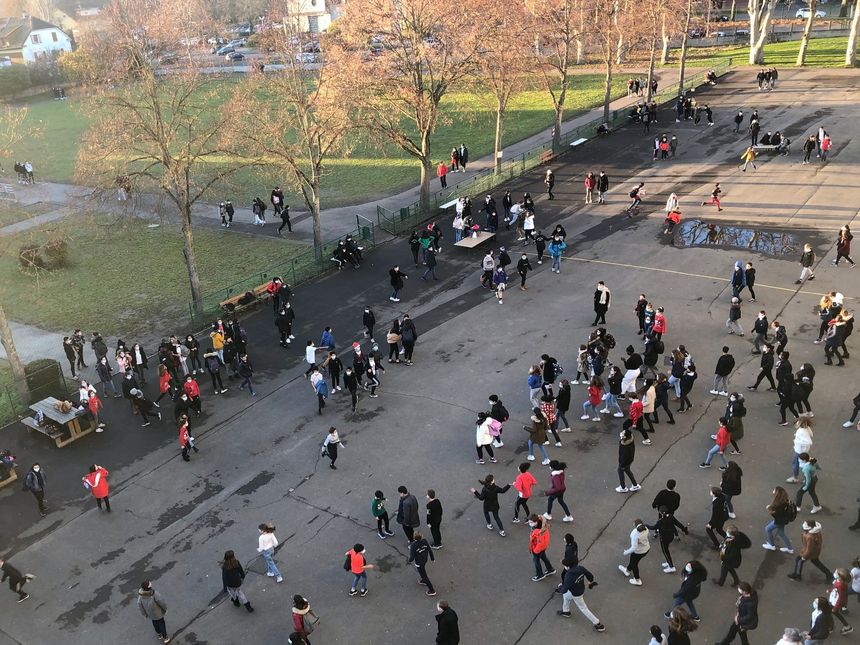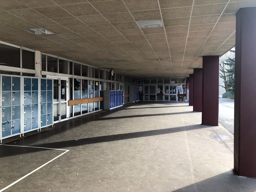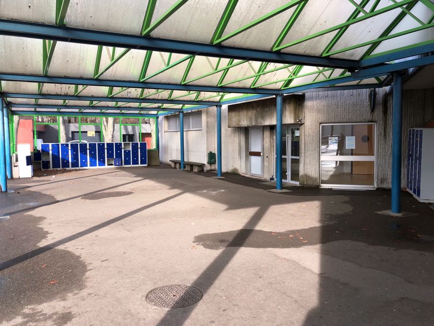 Les élèves bénéficient d'un très grand espace pour les moments de récréation ou pour la pause de midi : une large cour avec de nombreux bancs et tables en bois, deux préaux pour se protéger de la pluie... ou du soleil, un terrain engazonné avec une piste circulaire en dur pour se promener.