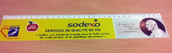 Sodexo a mis en place une action avec notre établissement afin de renforcer un partenariat actif au jour le jour. Dans le cadre du développement durable qui est une des valeurs chères de la société, une règle graduée avec un marquage "anti-gaspi" a été remise à chaque enfant fréquentant le restaurant scolaire en guise de cadeau de fin d'année.