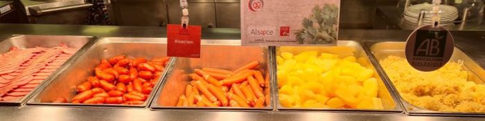 L'équipe de la Sodexo autour de notre Chef Bruno Fritz a organisé une animation spéciale "ALSACE" le jeudi 19 novembre. Au menu, de l'entrée au dessert, des spécialités de notre région gastronomique. Les élèves ont pu ainsi goûter à la salade vigneronne, au céleri rémoulade d'Alsace, à la traditionnelle choucroute (ou sa variante, choucroute au poisson) et bien sûr quelques autres spécialités pour finir : Munster, tarte aux pommes Streusel, fromage blanc Alsace lait, ou encore pomme d'Alsace à la crème. De quoi ravir les papilles !