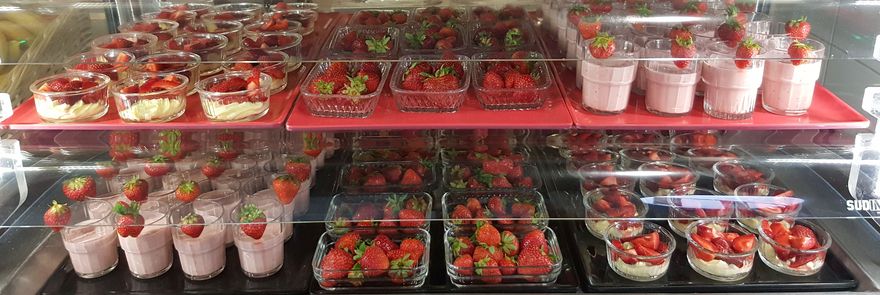 Quelle belle initiative ! Notre chef Bruno avait prévu pour le mardi 12 juin une animation particulièrement appréciée des jeunes : des desserts avec comme thème la fraise d'Alsace. Voici un petit aperçu des gourmandises que les convives ont pu déguster ce jour-là...