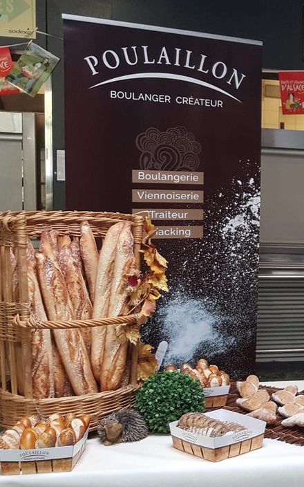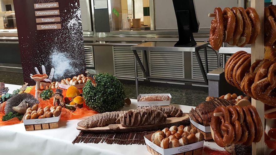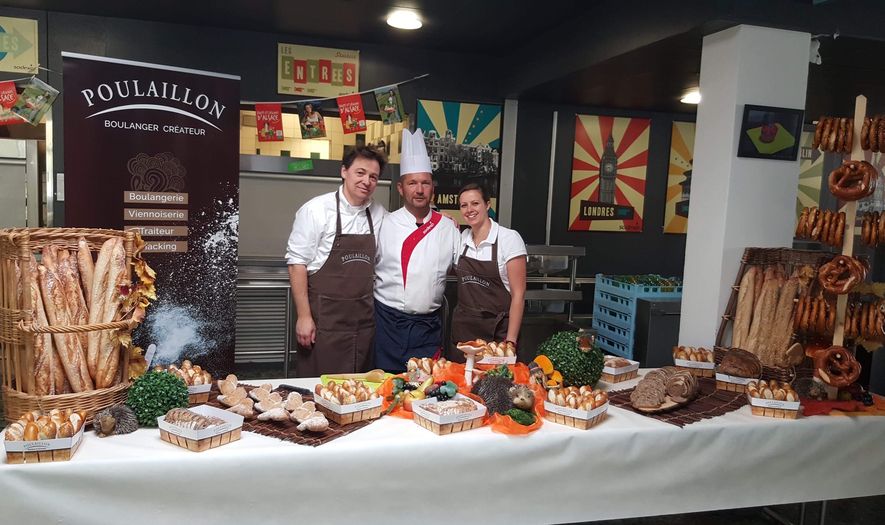 Une magnifique table de pains a été dressée par notre partenaire, la boulangerie Poulaillon, en plein centre du restaurant scolaire. Une très belle animation préparée avec notre chef Bruno. Voici quelques photos...