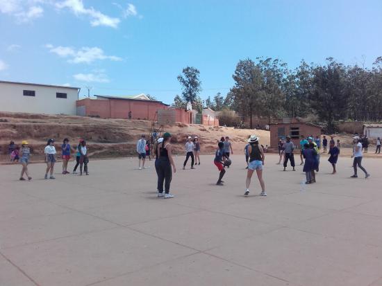 Les jeunes ont eu l'occasion de faire une belle partie de ballon prisonnier... D'abord intrigués, quelques jeunes malgaches ont finalement intégré une équipe et joué avec nous... Une première occasion de réviser notre vocabulaire de base de malgache.