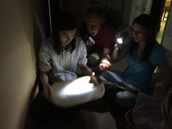 | ♦ Le Dimanche 18 octobre à 23h27 - Commentaire de Bonne Mamie et Bon Papi d'Emilie C’est super de pouvoir vous suivre tous les jours, et particulièrement Emilie, dans votre périple et vos joyeuses rencontres. Que de belles découvertes et de bons souvenirs en perspective. Nous t’embrassons Emilie ♦ Le Lundi 19 octobre à 08h30 - Commentaire de Marie B Fière de toi ma Jeanine !! Il va falloir que je m'habitue à ce nouveau prénom... tu comptes le garder ?!? ;-)). Continuez bien, c'est un régal d'avoir de vos nouvelles, et même à la lueur des bougies on est contents de voir vos bouilles ! Gros bisous ma puce.