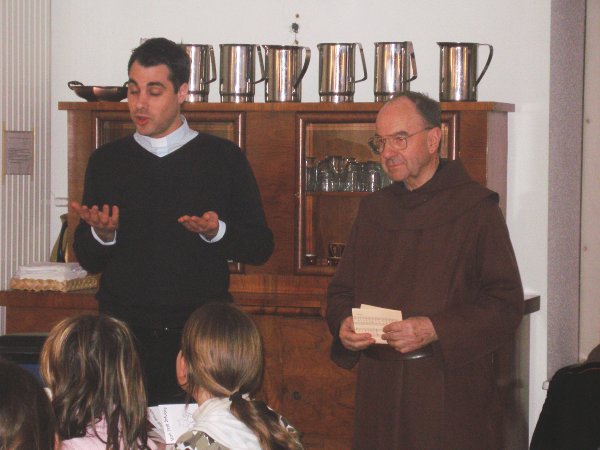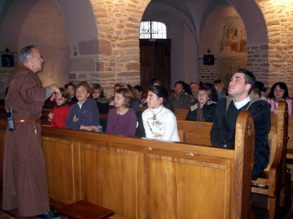 Dans l'autre groupe, Cédric Kuntz (le jeune diacre de la Paroisse St François qui nous a accompagné), est rejoint par le Père Etienne de la Congrégation. Ils nous expliquent la vie des moines et les journées qui sont rythmées par la prière, plusieurs fois par jour. A la fin de l'atelier, Père Etienne nous invite à participer aux vêpres avec les moines de la Communauté...