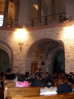 Nous rejoignons ensuite le Couvent pour travailler en petites équipes. Mme Schnoebelen nous rappelle les règles de vie des moines.