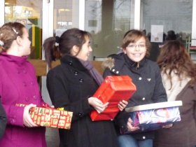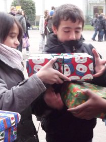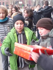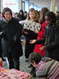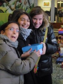 L'idée de réchauffer quelques coeurs a germé : une vaste opération a été lancée, relayée par les délégués dans toutes les classes du collège. Chacun s'est investi en décorant une boîte à chaussures et en la remplissant de produits de première nécéssité, avec une carte et un petit mot.